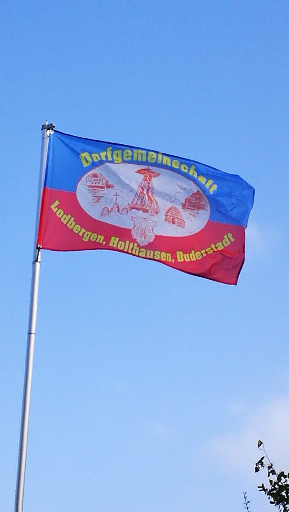 Unsere im Oktober 2017 von Dieter und Michael Irzig entworfene Fahne ist super angekommen und hängt bereits in sehr vielen Gärten der Dorfbewohner.